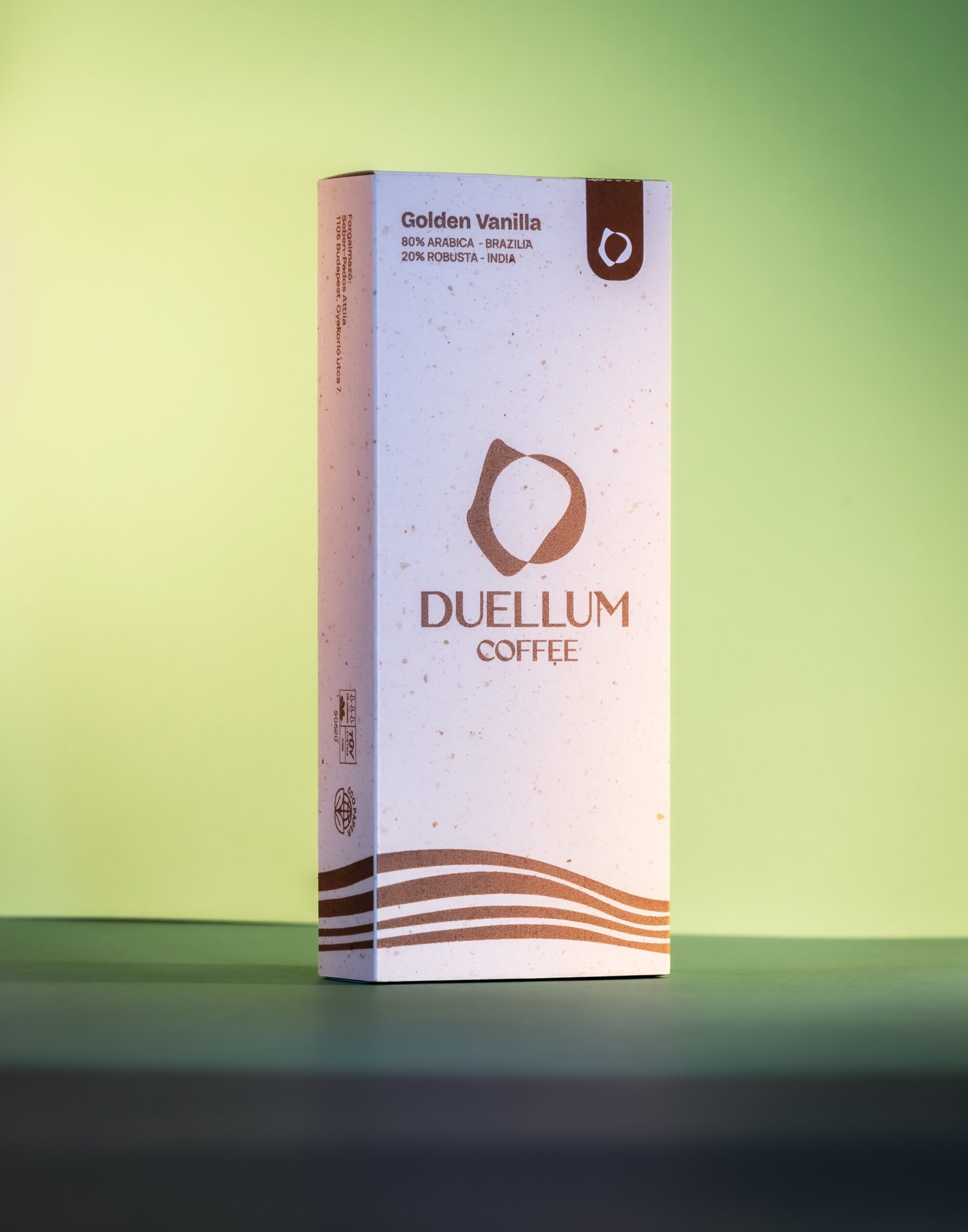 – Összetétel: 80% brazíliai Arabica, 20% indiai Robusta, vanília aroma (max 1%)